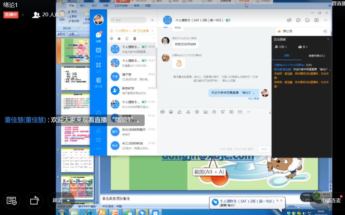 以下是来自同学们“云上课”的截图: