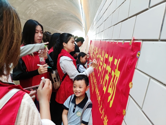 随后,一行人移步至南区隧道,进行了一场富有创意的涂鸦活动。孩子们在横幅上尽情挥洒想象力,绘制出了一幅幅充满童真与欢乐的画作。这些画作不仅记录了孩子们的快乐时光,也展现了他们对美好未来的憧憬。