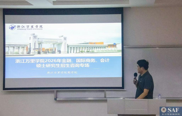 为帮助厦门大学嘉庚学院会计与金融学院(SAF)学生深入了解浙江万里学院商学院的研究生项目,我院于2025年10月17日中午1点在经管大楼#209教室举办专题宣讲会,系统介绍招生政策与培养方案。