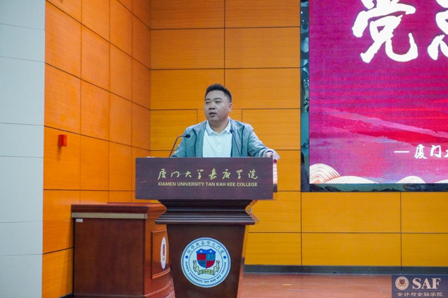 随后,会计与金融学院(SAF)党总支书记甘友成老师致辞,对第十届团学组织的成立表示热烈祝贺,并对各指导老师的辛勤付出表示感谢。他强调,团学组织是凝聚青年、引领思想、服务同学的重要平台,希望各部门负责人发挥传帮带作用,助力新成员在实践中锻炼成长。