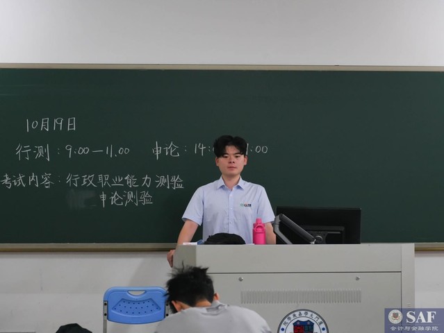 2025年10月19日上午9点及下午14点,厦门大学嘉庚学院会计与金融学院(SAF)校友工作中心联合如是生涯工作室在公共教学楼1号楼207教室,举办“剑指公考,预演拓新途”公考模拟大赛,分别开展行政职业能力测试(行测)与申论考试,旨在助力有志报考公务员的同学高效备考。